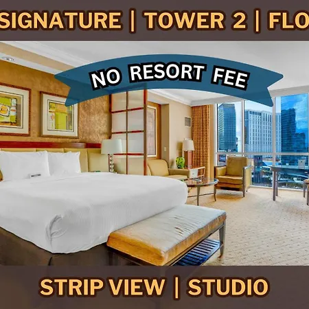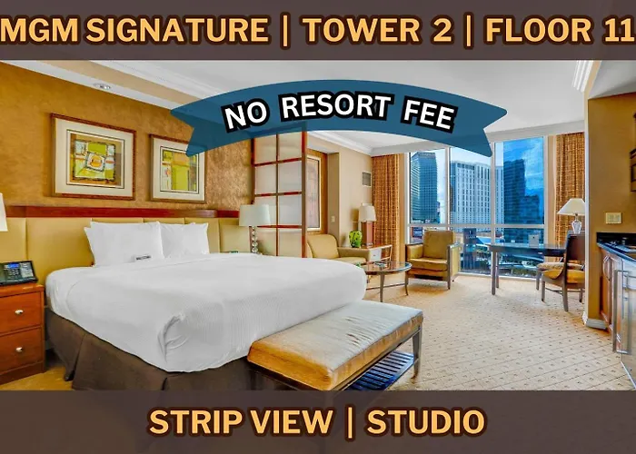 At 11Th Floor Mgm Signature Studio:Strip View, No Fee, a hot tub and a separate toilet have been provided to enhance your comfort. Hairdryers and towels are also included in the bathroom.